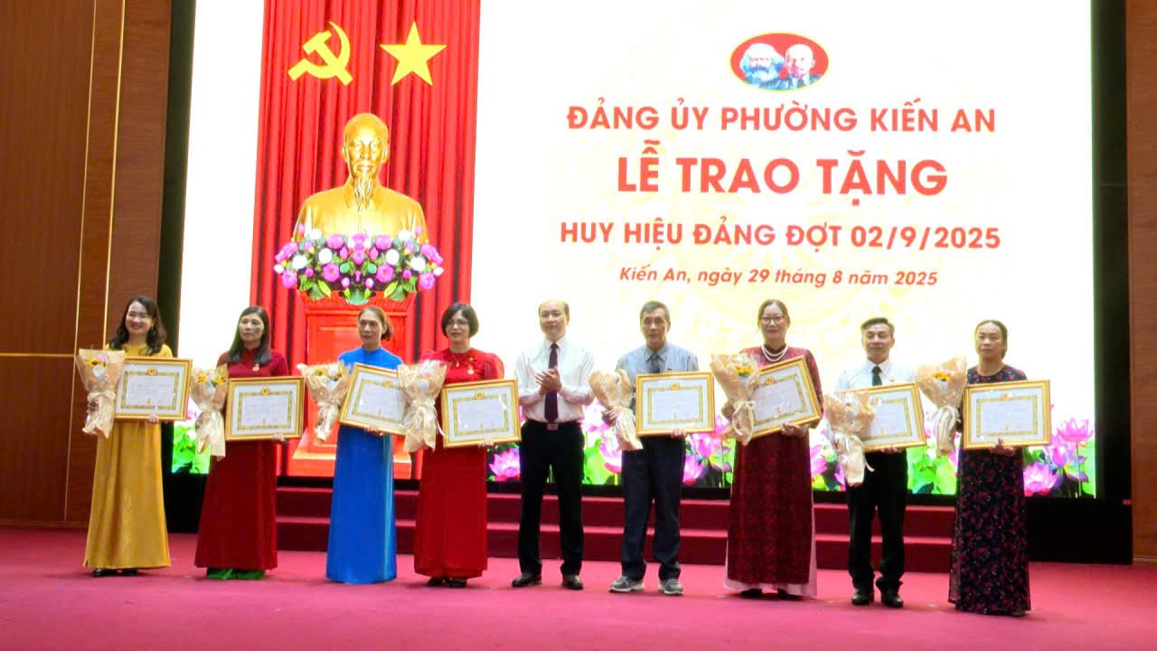 Sáng ngày 29/08/2025, Đảng ủy phường Kiến An long trọng tổ chức Lễ trao tặng Huy hiệu 70, 60, 55, 50, 45, 40, 30 năm tuổi Đảng cho các đảng viên tiêu biểu, có nhiều cống hiến trong sự nghiệp cách mạng của Đảng và dân tộc. Đây là hoạt động có ý nghĩa chính trị sâu sắc, thể hiện sự ghi nhận, trân trọng của Đảng đối với công lao, đóng góp của các đảng viên.