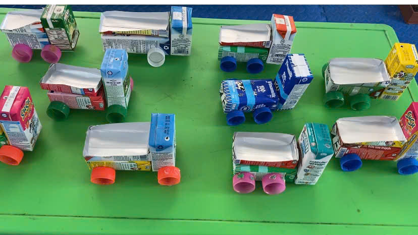 Chỉ từ những nguyên liệu rất đơn giản là những vỏ hộp sữa đã qua sử dụng, nắp vỏ chai.. các bạn nhỏ lớp
