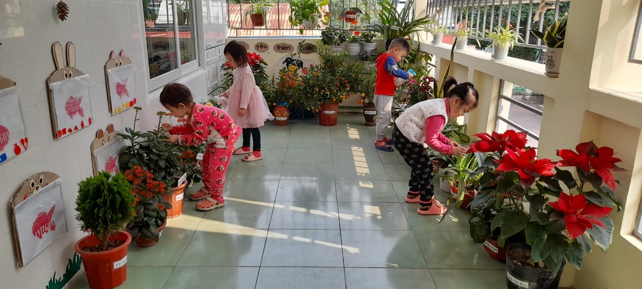 Vì vậy để hưởng ứng Tết trồng cây , các cô giáo đã tổ chức cho các con trồng cây xanh tại lớp học của mình , dưới sân trường … Những chậu cây nhỏ của các con cũng góp phần nhỏ bé vào sự phát triển của môi trường và thiên nhiên.