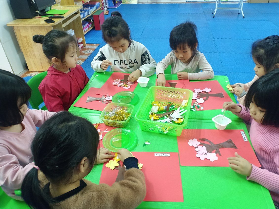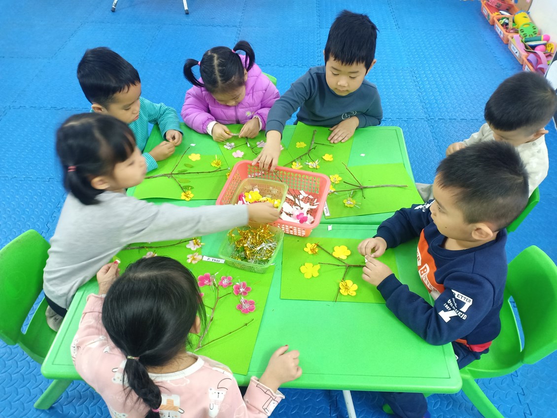 Với chủ đề «Xuân yêu thương, Tết sum vầy» thật gần gũi đối với trẻ mầm non. Các cô giáo đã mang đến cho trẻ những hoạt động thật ý nghĩa với không khí ấm áp tràn đầy sắc xuân. Thông qua các hoạt động giúp trẻ tự tin giao tiếp, phát triển các kỹ năng, mạnh dạn tự tin hơn trong các hoạt động.