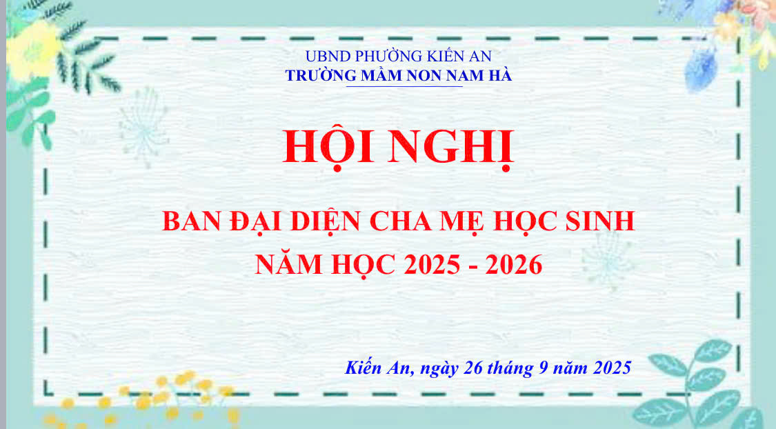Chiều ngày 26 tháng 9 năm 2025, tại Trường Mầm non Nam Hà đã diễn ra cuộc họp Ban đại diện Cha mẹ học sinh năm học 2025-2026. Với sự góp mặt của Ban đại diện cha mẹ học sinh của 10 lớp, BGH nhà trường, Bí thư đoàn Thanh niên và GVCN của 10 lớp. Cuộc họp do Bà Nguyễn Thu Thủy - Bí thư chi bộ, Hiệu trưởng nhà trường chủ trì.